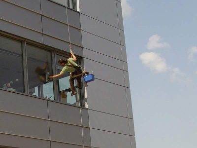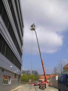 Práce provádíme pomocí horolezecké techniky a pracovních plošin. Jsme odborně způsobilí a pravidelně proškoleni k provádění prací ve výškách, obsluze pracovních plošin, sváření, pálení kovů, vázání břemen I BOZP.